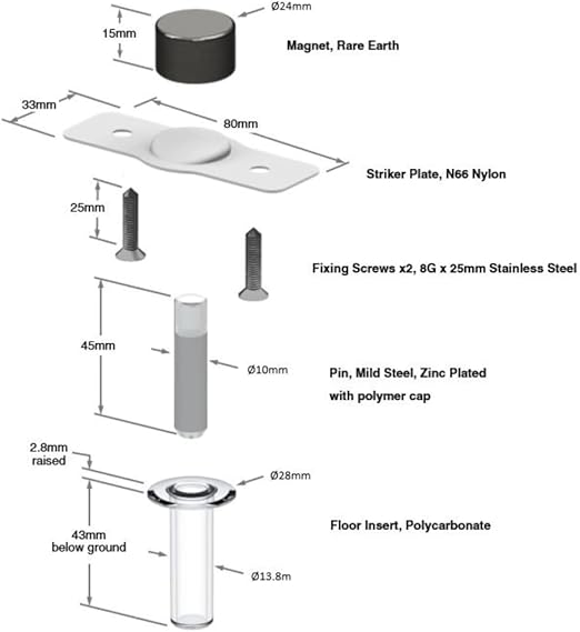 • Paslėptas montavimas – durų stabdis įleidžiamas į grindis, o magnetas paslepiamas durų apačioje, todėl niekas neišlenda ir netrukdo vaikščioti.