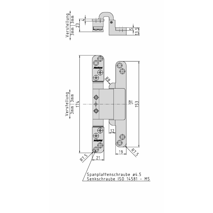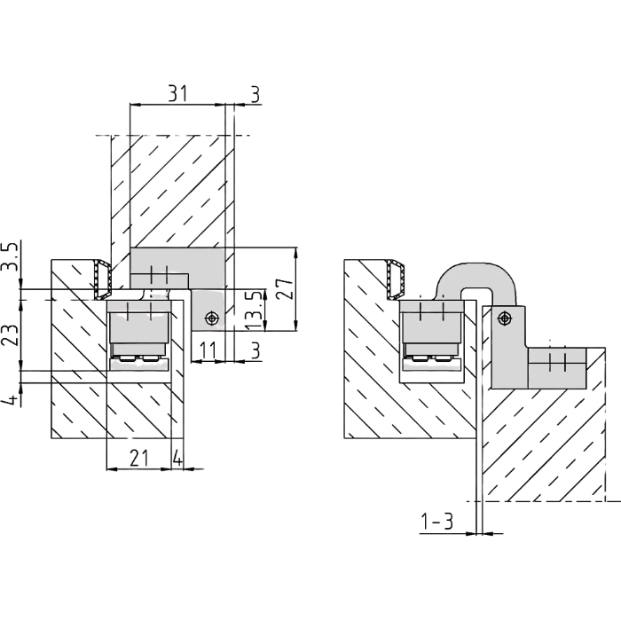 Paslėpti vyriai užlaidinėms vidaus durims iš medžio masyvo ar plokštės.