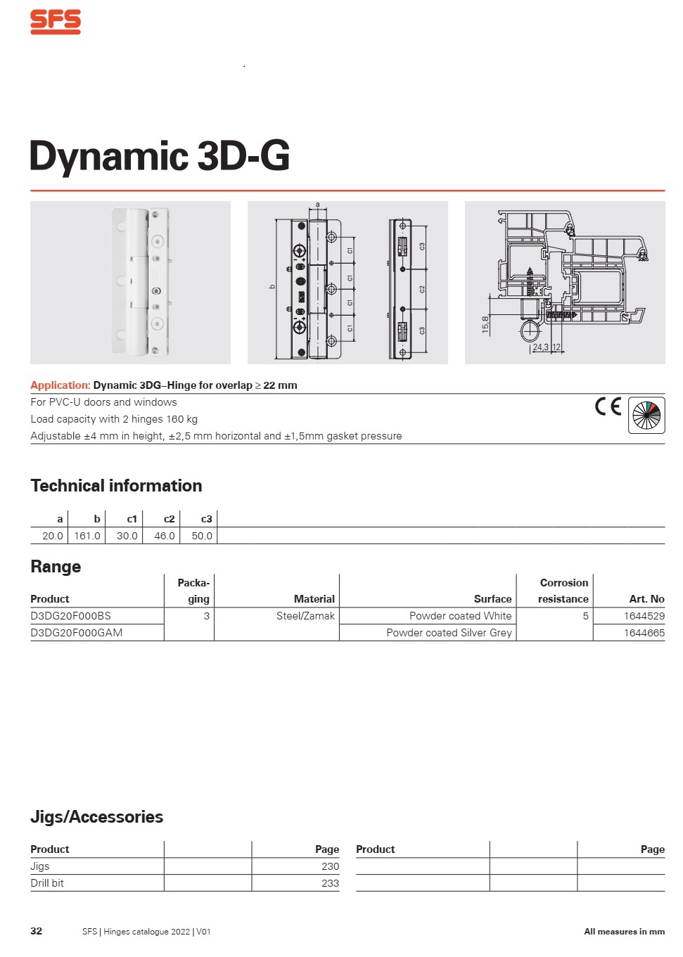 Universalumas – tinka skirtingoms medžiagoms. Dynamic 3D G pritaikomas PVC – U, aliuminio, medienos ar mediena – aliuminis durims, be to – tinka tiek kairinėm, tiek dešinėm durim.